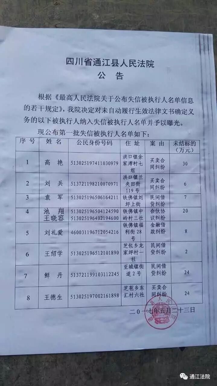一直以来,一些群众对法院执行工作的强制性认识不足,认为就是单纯的罚款、拘留,法院最多拘留十五日。5月25日通江法院将失信被执行人信息在被执行人居住地集市,村委会张贴,给要面子的“老赖”丢了面子,今天上午张贴,下午就有一名被执行人主动找执行法官缴纳执行款。今日共执行4件案件,1件“委托合同纠纷”案,执结到位标的2000元;1件“借款合同纠纷”案,执结到位标的71433元;1件“金融借款合同纠纷”案,执结到位标的57100元;1件“借款合同纠纷”案,经执行人员协调沟通,双方当事人达成和解协议,申请人撤回执行申请。