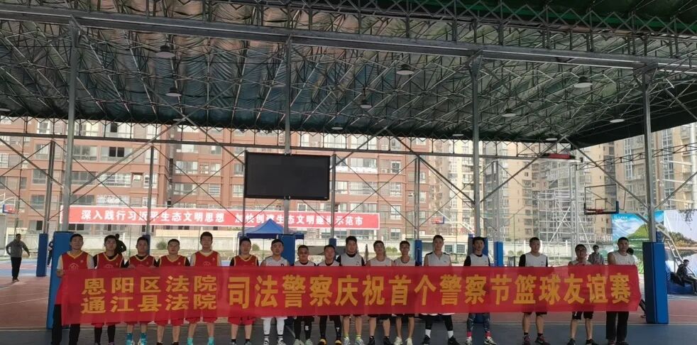 1月10日,通江法院与恩阳法院司法警察举行篮球友谊赛,庆祝第一个“中国人民警察节”。
