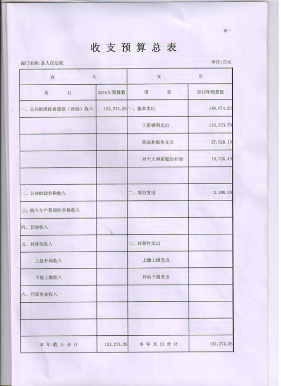 2016年财政预算